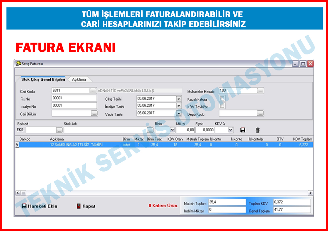 Profesyonel Servis programı sayesinde tüm servis hareketlerinizi takip edebilir personel performans raporlarını alabilir aynı zamanda firmanızın muhasebesini tutabilirsiniz.